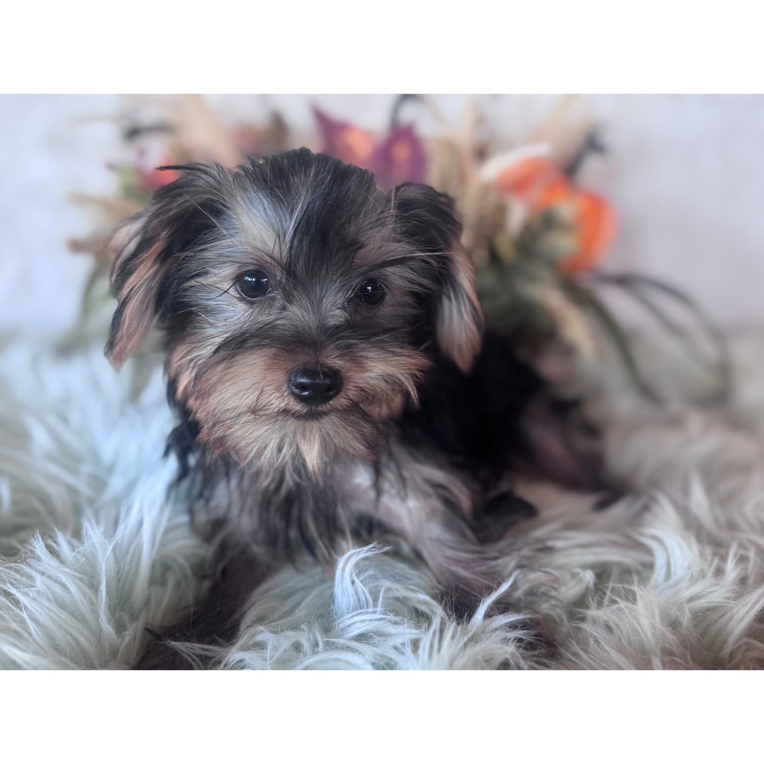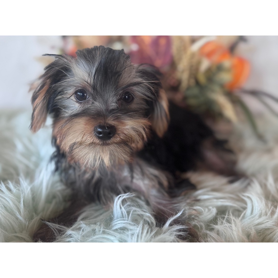 Hi, I’m Moose! I’m a 17-week-old male Yorkshire Terrier with a beautiful black & tan coat, born on April 29, which makes me a Taurus pup. I am ready now to plan my trip to my forever family. Once I reach my adult size, I’m expected to weigh between 4.5–8 lbs. I’m APRI registered. I can’t wait to fill your home with snuggles and tail wags.