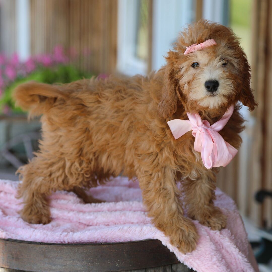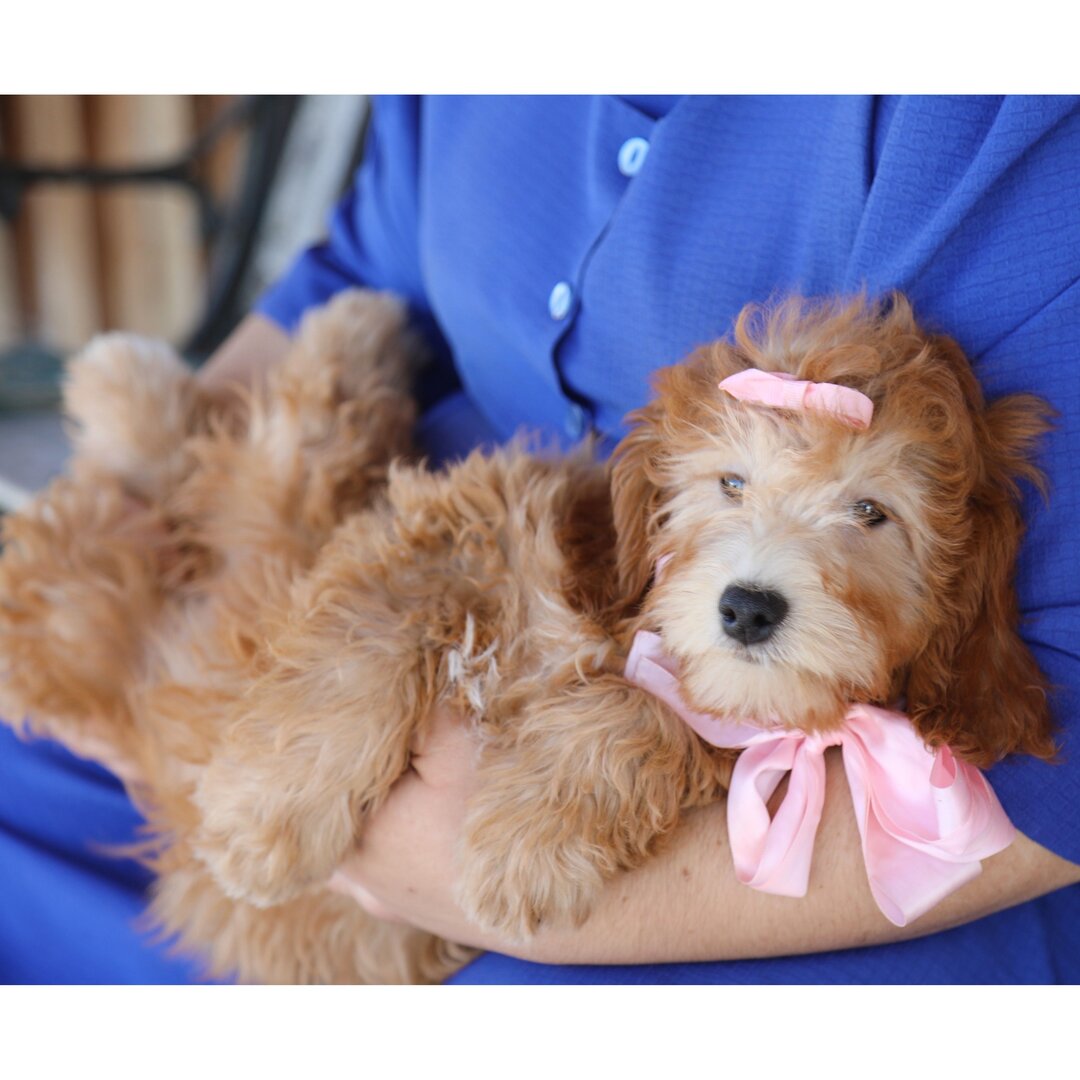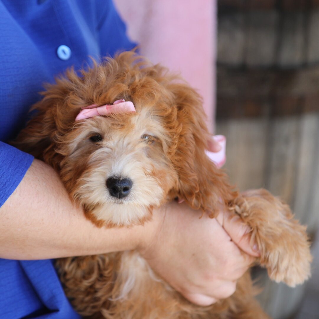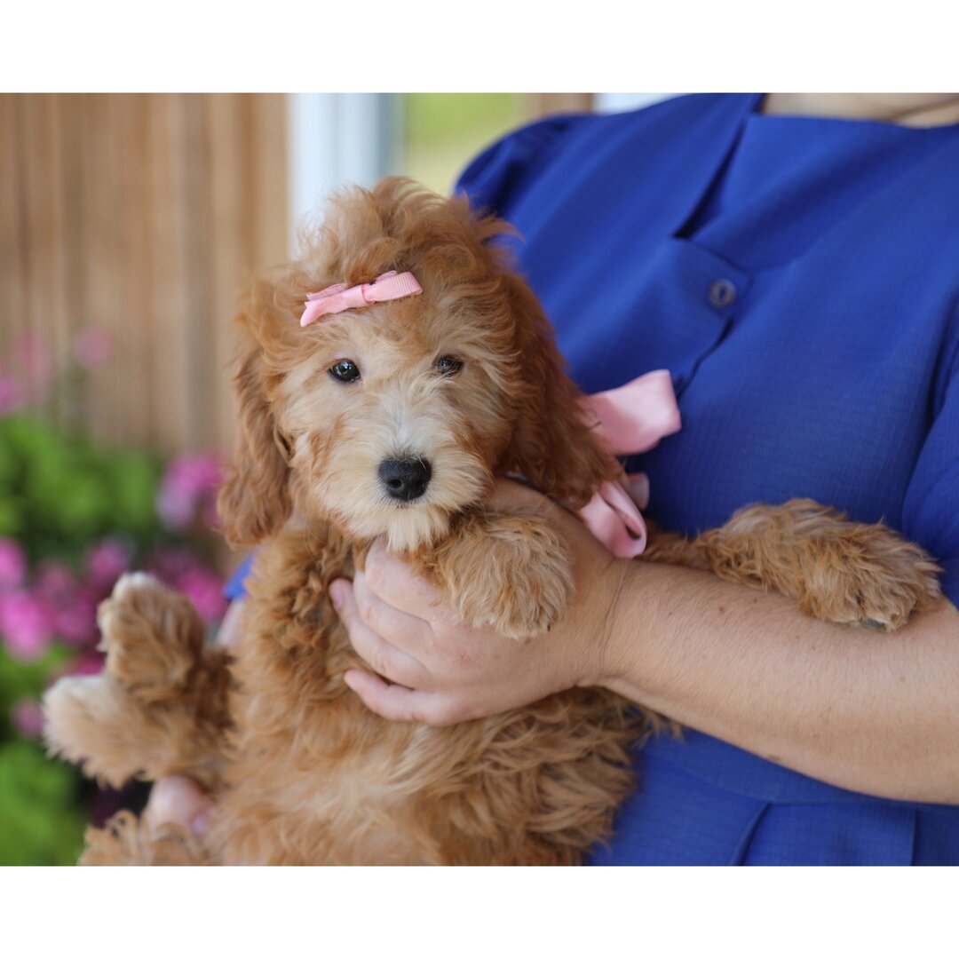 Hi, I’m Rosella! I’m a 14-week-old female Goldendoodle with a beautiful red coat, born on May 18, which makes me a Taurus pup. I am ready now to plan my trip to my forever family. I’m all set to bring my cheerful energy into your home.