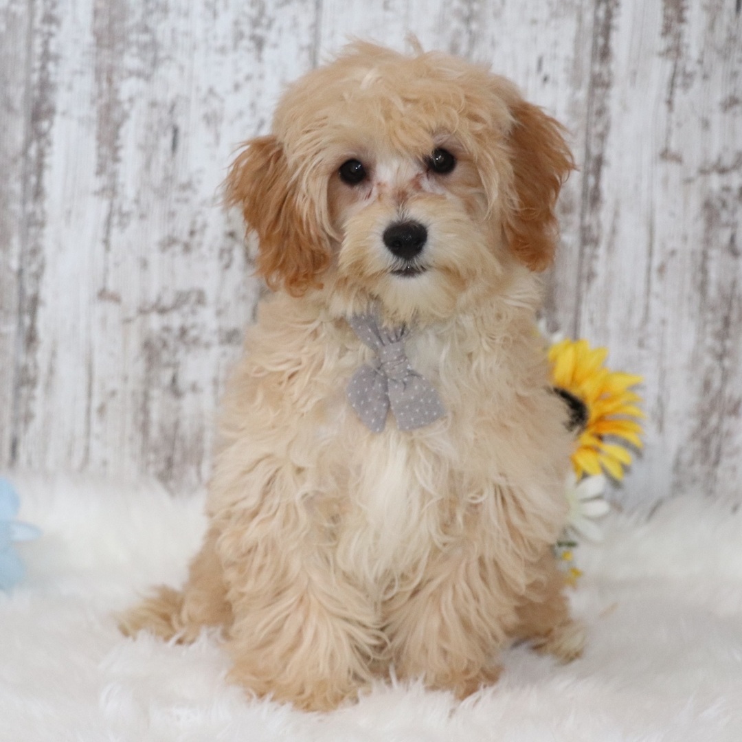 Hi, I’m Sully! I’m a 21-week-old male Maltipoo with a beautiful apricot coat, born on April 3, which makes me an Aries pup. I am ready now to plan my trip to my forever family. Once I reach my adult size, I’m expected to weigh between 6–10 lbs. I’m excited to find my forever family and share my love.