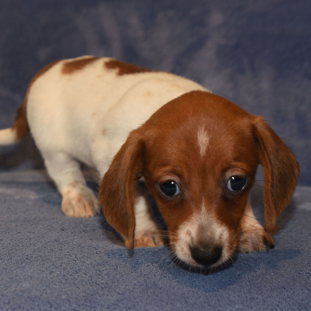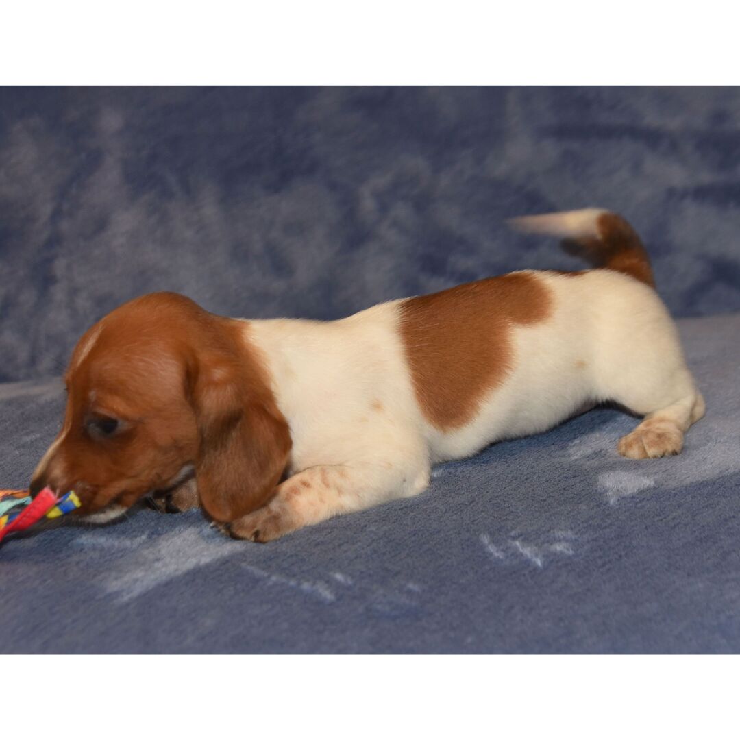 Hi, I’m Teensie! I’m an 8-week-old female Dachshund with a beautiful red coat, born on July 2, which makes me a Cancer sign. I’ll be ready to go home to my forever family after September 3, once I’m grown enough to leave my litter. I’m ACA registered. I can’t wait to bring my big puppy heart and wagging tail into your home.